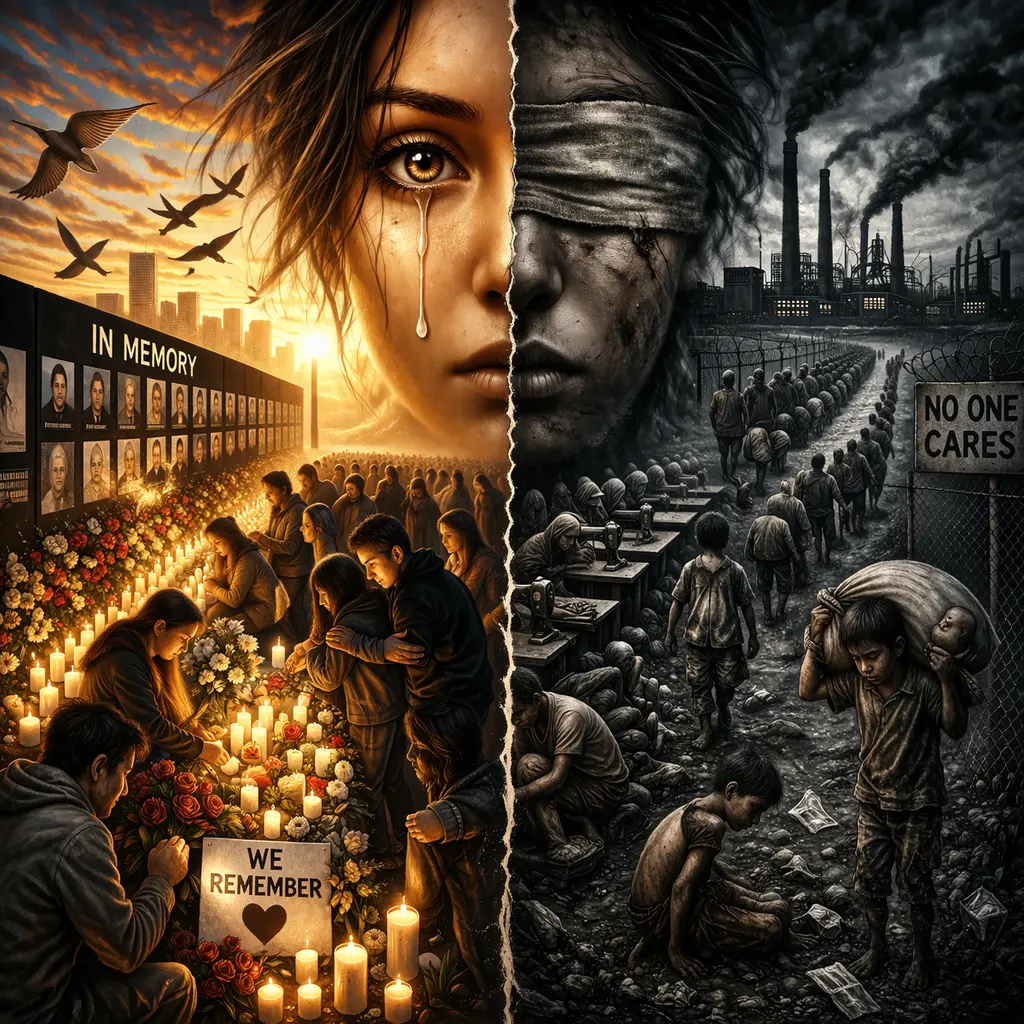 The lesson of history is not that one atrocity outweighs another. The lesson is that all atrocities emerge from the same diseased permission structure: the willingness to selectively withdraw compassion in exchange for power, profit, identity, or convenience. Until that permission is destroyed at its root, humanity will keep doing what it has always done. It will hold memorials for the dead while building new machines to kill the living.